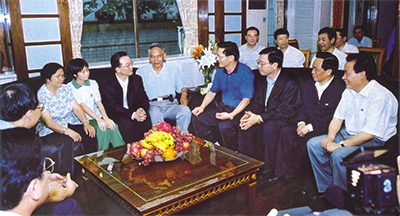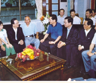 時(shí)任廣州市市長(zhǎng)張廣寧(中)親切接見(jiàn)公司董事長(zhǎng)曾滿洪(右二)